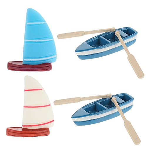 Angoily Mini 4 Pz in Miniatura Barca Figurines Resina Barca Cinese Barca da Pesca Statua Mini Barca a Vela Modello Sfairy Giardino Ornamento Estate Spiaggia Decorazione Del Partito