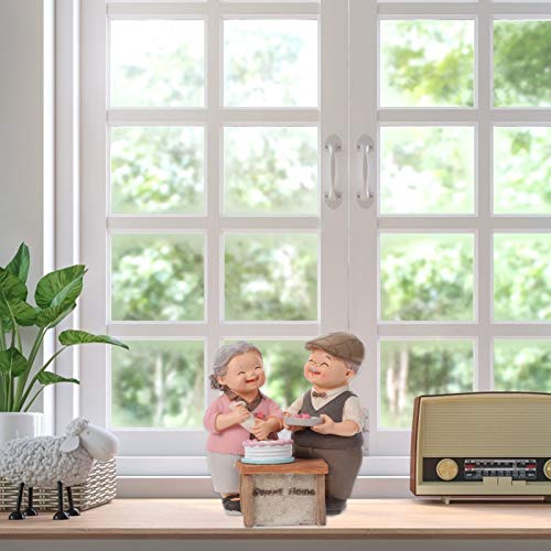 Angoily 1 statuetta romantica coppia innamorata dolce amorevole insieme coppia scultura amorevole coppia anziana statua in miniatura per nonni, genitori, anniversario, regalo di nozze (torta)