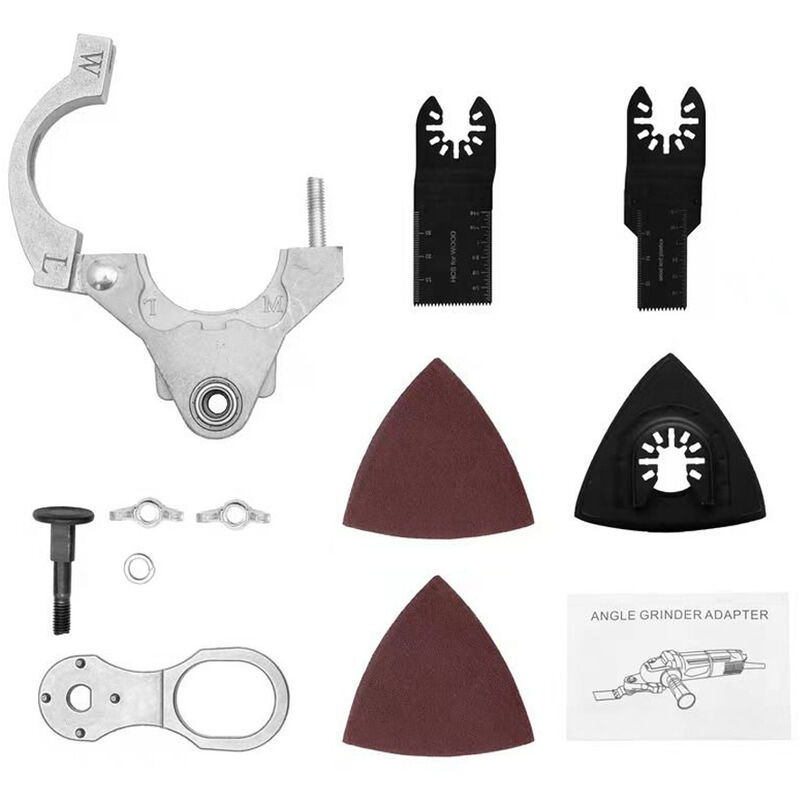 Questo set di strumenti per la modifica della smerigliatrice angolare ti consente di rimontare la tua smerigliatrice angolare in diversi strumenti di utilità, quindi puoi utilizzarla per il taglio del legno, la lucidatura del legno, la levigatura delle pareti e così via. Questo set di accessori può ottenere una varietà di funzioni, vieni e divertiti, non ti deluderà. Caratteristiche: Modalità di taglio oscillante 3°, utilizzando il principio di funzionamento del taglio oscillante, più sicuro per l'utilizzo e per un'esperienza di utilizzo migliore. Adotta il design dell'interfaccia degli accessori universali, compatibile con alcuni accessori come lame per seghe e dischi di sabbia triangolari, puoi cambiare i diversi accessori per le tue diverse esigenze. Facile da installare: puoi installare facilmente l'adattatore e le lame sulla tua smerigliatrice angolare. Multifunzioni: con questo set di strumenti di modifica, puoi utilizzare la tua smerigliatrice angolare con questo set di