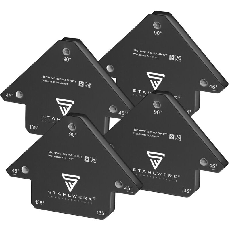 Con una forza adesiva di 11,3 kg, i pratici angoli magnetici per saldatura sono ideali per posizionare i pezzi durante tutti i lavori di saldatura. I magneti per saldatura sono versatili grazie alle loro diverse angolazioni (45° | 90° | 135°) e indispensabili in ogni officina. Il magnete angolare è l'ausilio ideale per saldatori, montatori o artigiani e sostituisce in molti casi la terza mano. I robusti posizionatori per saldatura sono adatti a processi di saldatura come TIG | MIG MAG | ARC | MMA | FLUX. Caratteristiche Con una forza adesiva di 11,3 kg, le pratiche staffe magnetiche per saldatura sono ideali per posizionare i pezzi durante tutti i lavori di saldatura. Grazie alle diverse angolazioni (45° | 90° | 135°), i magneti per saldatura sono versatili e indispensabili in ogni officina. Il magnete angolare è l'ausilio ideale per saldatori, montatori o artigiani e sostituisce in molti casi la terza mano. I robusti posizionatori per saldatura sono adatti a processi di saldatura