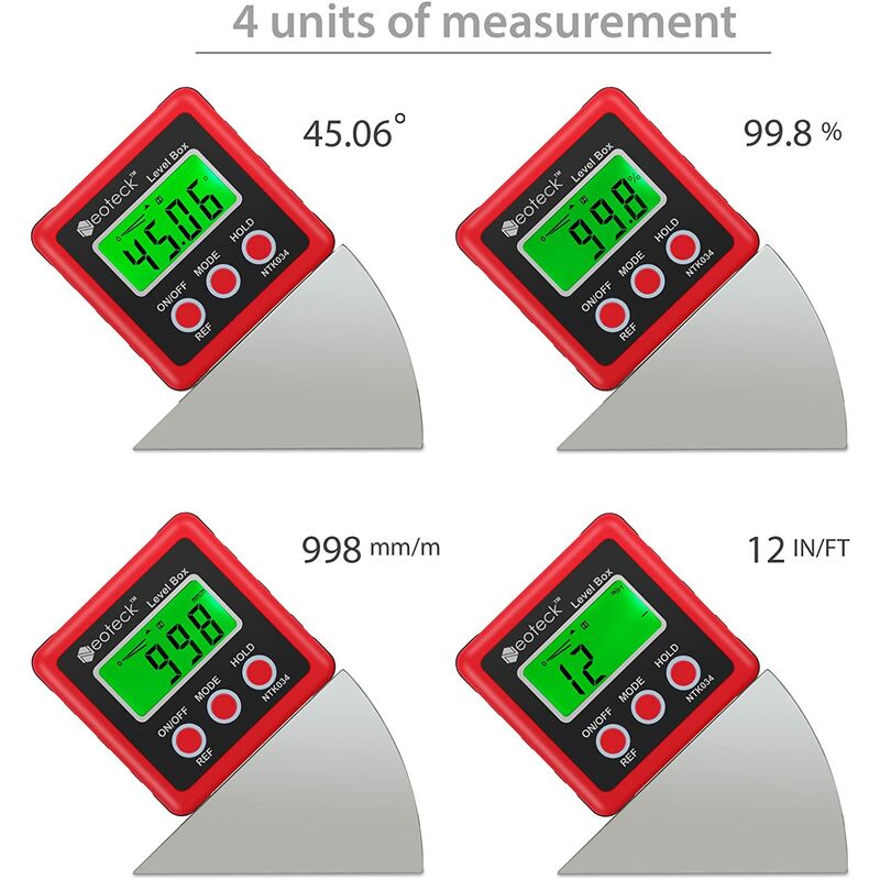 Strumento di misurazione dell'angolo digitale - Uno strumento di misurazione dell'angolo digitale con un campo di misurazione di ±180° (0-360°), piccolo e leggero, facile da usare, appositamente progettato per regolare o controllare l'angolo relativo tra superfici, e can essere utilizzato anche come vero livello digitale per luoghi difficili. 【Display LCD】Il valore può essere letto facilmente sul display LCD. 【Magnete integrato】Ci sono potenti magneti incorporati sulla base per garantire il fissaggio a qualsiasi superficie di ferro. 【Alta precisione】 Fornisce misurazioni accurate con una precisione di ±0,2 gradi. 【Spegnimento automatico】È alimentato da 2 batterie AAA LR03, non incluse, può spegnersi automaticamente dopo aver lavorato per 3 minuti.
