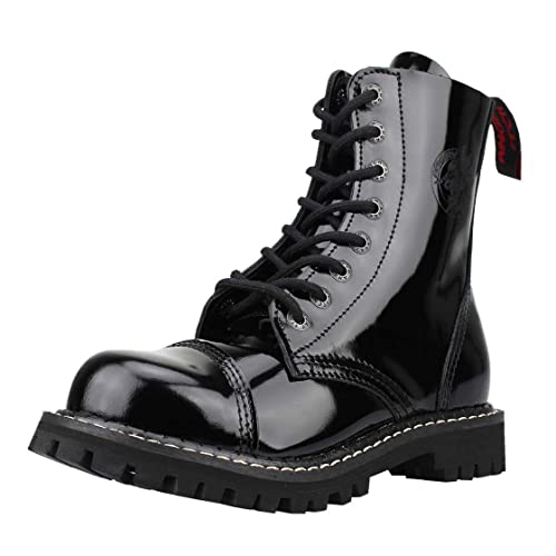 Angry Itch Anfibi Stivali Militari Unisex Donna Uomo Pelle Nero Lucido Vernice 8 Buchi Punta di Ferro Punk