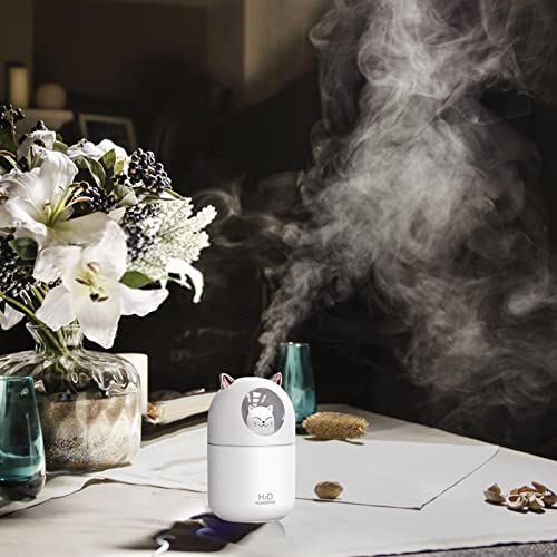 Angxiong Mini umidificatore, diffusore di oli essenziali a forma di gatto, 300 ml, umidificatore ricaricabile con luce notturna, cura della pelle, idratante