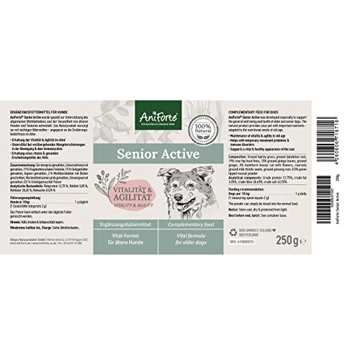 AniForte Senior Active Powder 250 g per Cani Anziani - minerali, aminoacidi e vitamine per Cani, Supporta la Memoria e la Funzione cardiaca, cozza dalle Labbra Verdi per la vitalità e l'agilità