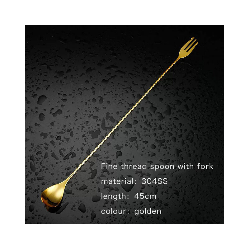 Bar Anima Bar Cucchiaio In Acciaio Inox 304 Da Cocktail Bar Cucchiaio Con Forchetta Torto Miscelazione Mescolare Cucchiaio Professionale Bartender Strumenti,45cm golden