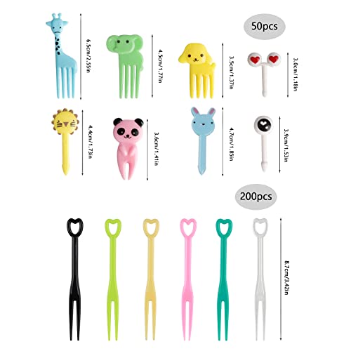 250 pezzi riutilizzabili in plastica mini forchette raccoglifrutta set include 40 forchette di frutta animale, 10 forchette di frutta grande occhio e 200 forchette di frutta cuore con colori arcobaleno, Soddisfa tutte le vostre esigenze per vari scenari.