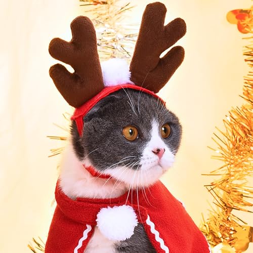 【Costume di natale】Il set di animali costume di babbo natale comprende un mantello natalizio e un divertente accessorio per capelli con corna. Ideato per gatti e cani di piccola taglia, non adatto a cani di grossa taglia.