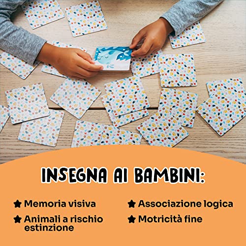 Animali in Via d' Estinzione - Memory Gioco per Bambini - Adventerra Games - Insegnare l'Ecologia ai Bambini - Gioco Educativo Bambini 2+ Anni, Gioco Montessori - Gioco Ecologico - 32 Maxi Carte