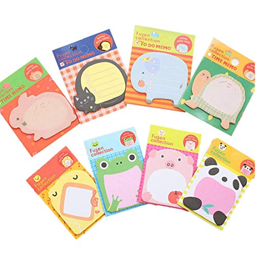 8 PCS animali del fumetto Forma Note autoadesive Memo Pad Colazione Sticky Notes Carino Message Pad di cancelleria della scuola del regalo per i bambini