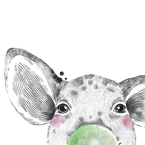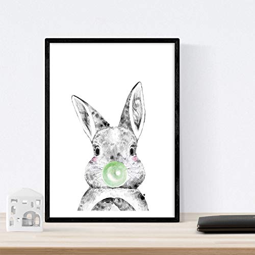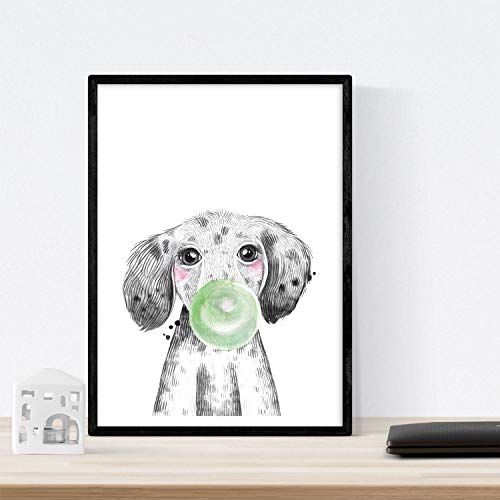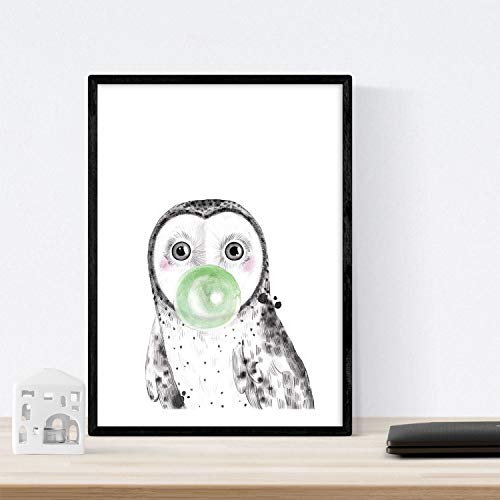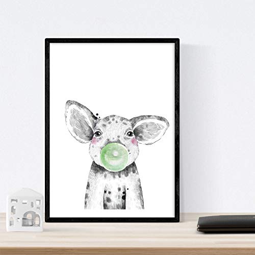Animali 6 settembre manifesti bambino con gomma da masticare. Pig mucca coniglio Fox Owl Perro.Tamaño A4