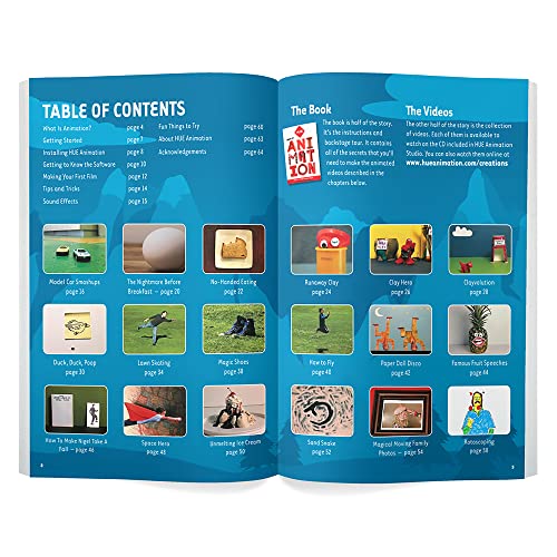 IL KIT COMPLETO DI ANIMAZIONE IN STOP MOTION include la videocamera HUE HD USB con microfono integrato, software stop motion facile da usare (Windows), un libro a colori di 64 pagine di animazioni, un piccolo palco con sfondo, attività stampabili ed effetti sonori.