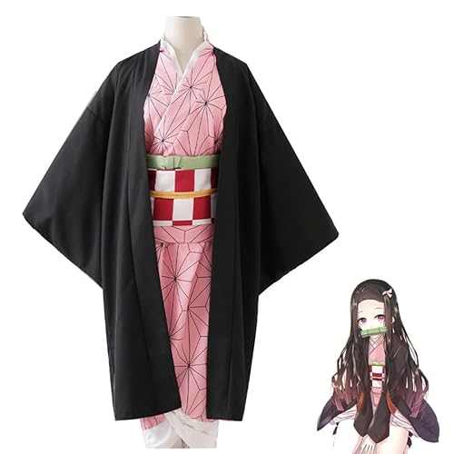 Anime Demone Cosplay Nezuko Kamado Costume Kimetsu no Yaiba Uniforme Kimono Parrucca Del Partito di Halloween Costumi Per Le Donne Ragazze (Set parrucca,Kids150)