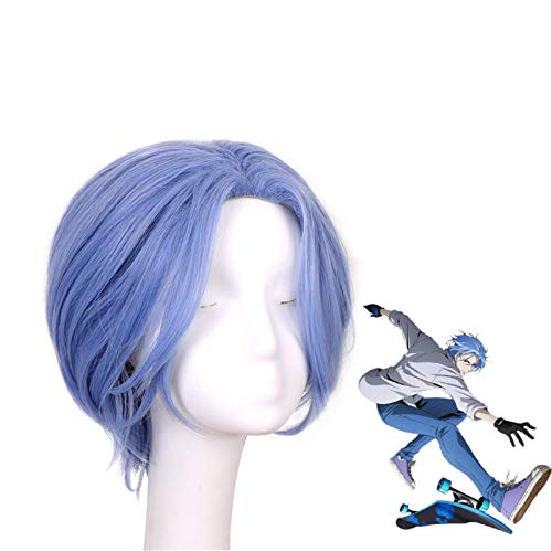 Anime SK8 Langa Hasegawa Cosplay Parrucca Centro Blu Capelli Corti + Cappuccio Parrucca Gratuito