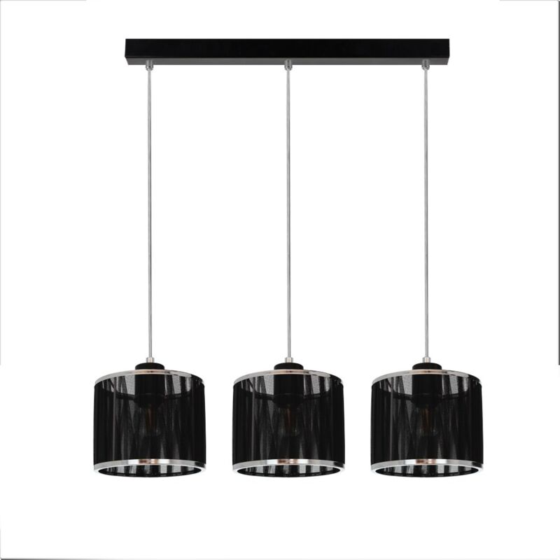 Questa sospensione nera rotonda con 3 punti luce nascosti sotto paralumi neri è una proposta per gli amanti degli allestimenti moderni e minimalisti. Il metallo e il tessuto di alta qualità sono una garanzia di altissima qualità, per cui potrete godere di questa sospensione per molti anni a venire. CARATTERISTICHE: Peso: 1,55 kg Materiale: metallo / tessuto Base: E14 Lampadina: 3 x max 25 W Lampadina inclusa: No Lunghezza di sospensione: 110 cm SPECIFICHE TECNICHE: Lunghezza: 53 cm Paralume - Ø 15 cm Altre dimensioni: rosa - altezza 2,5 cm;