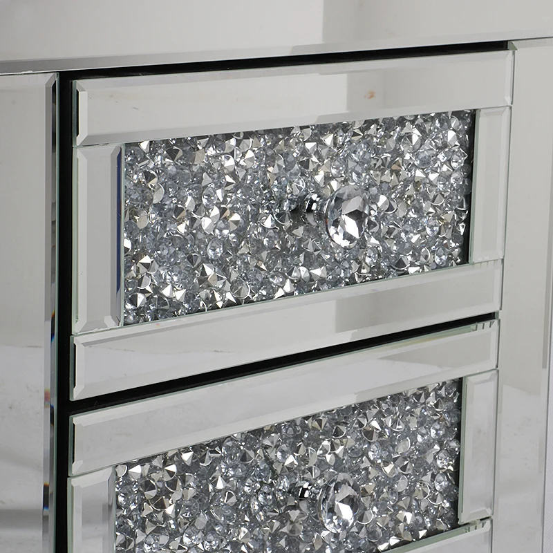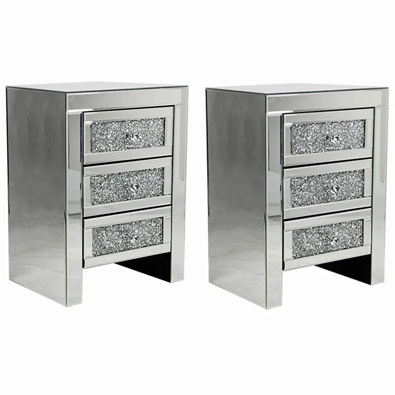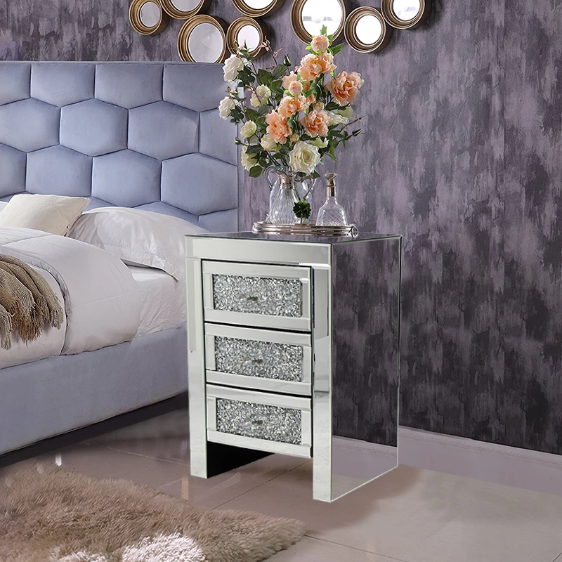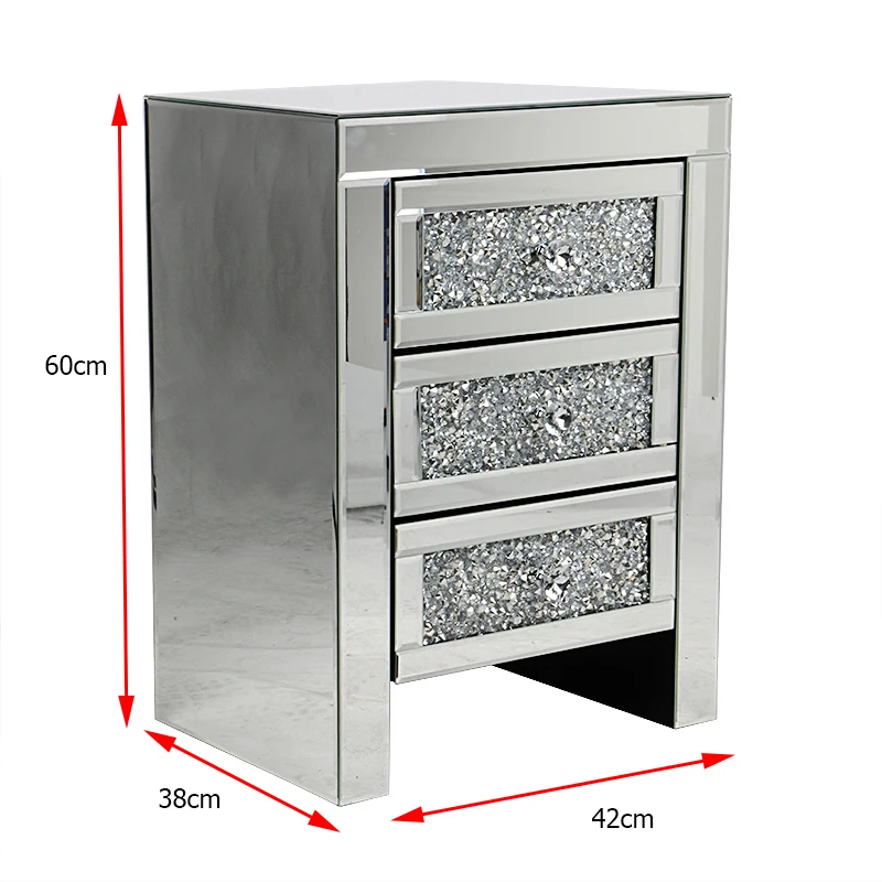 2 X anjohn Mirrored Crystal Glass Bedside Table 3 Drawer Bedroom Cabinet Nightstand Fast delivery
