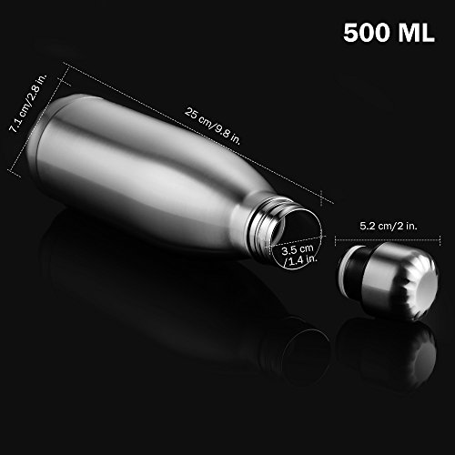Anjoo Bottiglia Termica in Acciaio Inossidabile, Leggero e Compatto in Bottiglia Termica per Ufficio, All'aperto, Cucina, Campeggio o Sport - Argento / 500ml