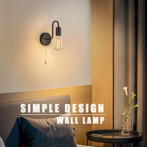 ANKBOY Retro Applique E27 Con Interruttore A Tirante Lampada Da Parete Vintage Industriale Metallo Nero Aplique da Parete Interni Faretti da Muro Corridoio Soggiorno Loft Camera da letto