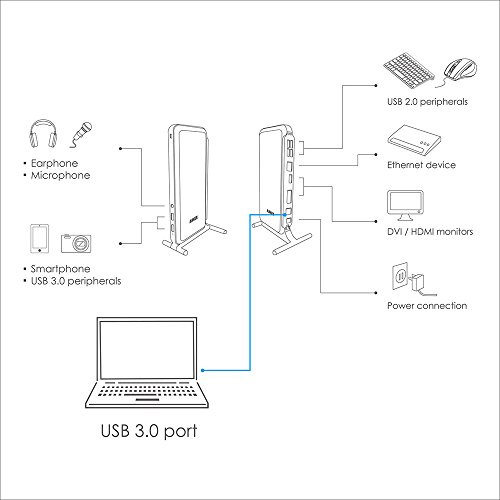Anker USB 3.0 Dual Display Docking Station con DVI/HDMI Fino a 2048 x 1152, Audio, Gigabit Ethernet, e 6 USB Porte (2 USB 3.0 + 4 USB 2.0) per Windows (19 V/2 A Power Adapter Incluse