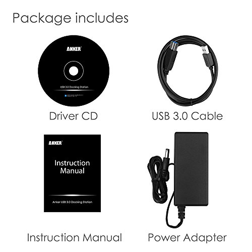 Contenuto della confezione: Anker USB 3.0 docking station, supporto removibile, 19 V 2 a AC Power Adapter, CD driver, manuale utente Installations guide e rapido (in lingua inglese)