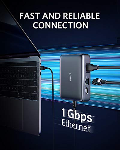 Anker PowerExpand 7-in-1 Thunderbolt 3 Mini Dock Station per Laptop USB-C Max 45 W per la Ricarica di Laptop, 4 K HDMI, 1 Gbps Ethernet, USB-A Gen 2, SD 4.0 (Cavo Non Incluso)