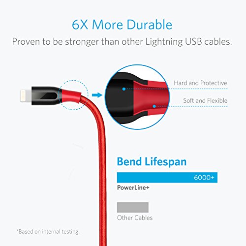 Anker Powerline+ - Cavo Lightning da 0,9 m, in nylon, compatibile con iPhone X/8/8 Plus/ 7/7 Plus/ 6S/6/6 Plus/ 5S/5/iPad ecc. (rosso)