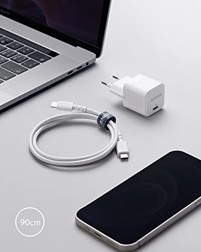 Anker PowerPort III - Caricatore USB-C da 20 W con cavo di ricarica USB-C a Lightning, compatibile con iPhone 12/12 mini/12 Pro/12 Pro Max/11, Galaxy, Pixel 4/3, iPad Pro, e altri, colore: bianco