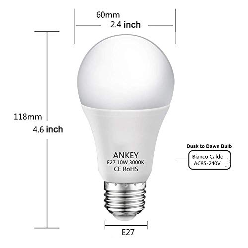 Ankey Lampadina LED Sensore 10W E27 Lampadine con Sensore Crepuscolare di Luce Bianco Caldo 3000K Auto On/Off per Portico Corridoio Garage-2 Pezzis