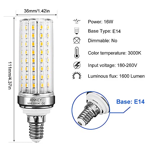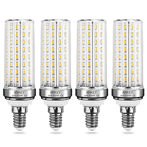 Ankey Lampadine a LED E14, 16W Equivalenti a 120W, Lampadina E14 LED Mais, Luce Bianco Caldo 3000K, 1600LM, Non Dimmerabile, Confezione da 4