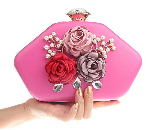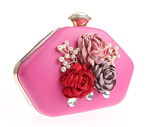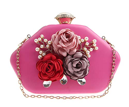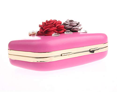 AnKoee Pochette da Donna Borsa da Sera con Catena per Borsa da Sposa Prom Pochette Fiori(Rosa-rosso)