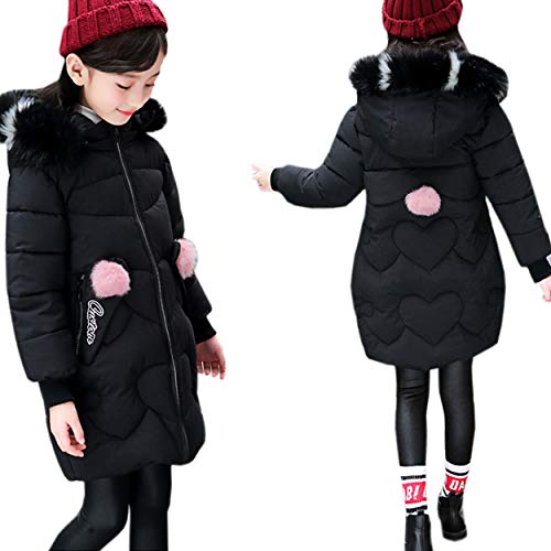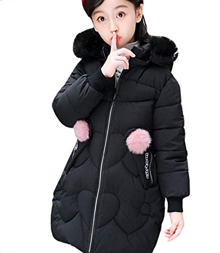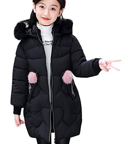 AnKoee Ragazze Giacca Cappotto con Cappuccio Piumino Caldi Giubbotto Parka per Bambino Ragazze, Nero 150cm/9-10 Ans