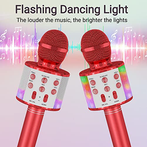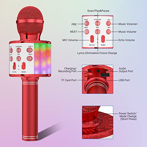 Ankuka Microfono Karaoke Bluetooth Wireless Microfono Bambini Regalo per Bambini 3-12 Anni Microfono Giocattolo Cambia Voce, Compatibile con Android, iOS, PC Rosso