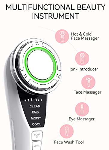 【Massaggiatore viso multifunzionale】Un dispositivo di bellezza 5 in 1 che combina le funzioni di pulizia profonda, impacchi caldi e freddi, EMS, promozione dell'assorbimento e massaggio facciale. Risolve vari problemi della pelle come punti neri, rughe e acne