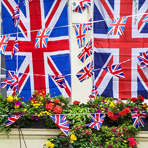 ✔ VERSATILE DÉCOR - Compleanno di Sua Maestà la Regina Elisabetta, eventi patriottici o inaugurazione della tua attività, indipendentemente dall'occasione, queste bandiere a corde saranno in grado di adattarsi perfettamente con altre decorazioni!