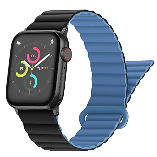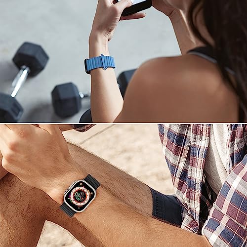 Anlinser Compatibile con Cinturino Apple Watch 45mm 44mm 42mm 41mm 40mm 38mm, Cinturini Magnetici Ricambio Silicone con Passante per iWatch Ultra 2 Serie 9/8/7/6/5/3/SE (49/45/44/42, Nero/Blu)