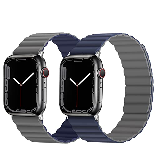Anlinser Compatibile con Cinturino Apple Watch 45mm 44mm 42mm 41mm 40mm 38mm, Cinturini Magnetico Reversibile su Entrambi Lati per iWatch Ultra 2 Serie 9/8/7/6/5/4/3/SE (42/44/45/49,Blu Scuro/Grigio)