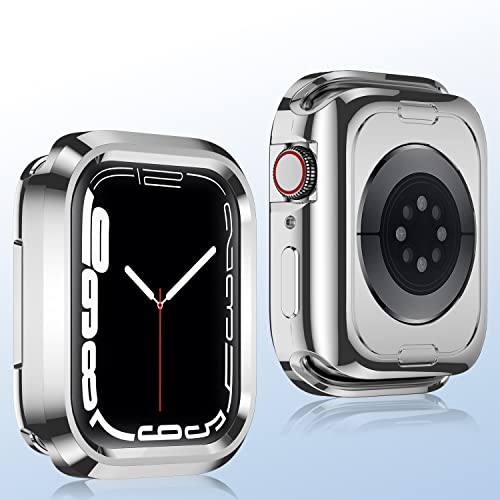 Anlinser 2 Pezzi Cover Compatibile con Cover Apple Watch Series 8/Series 7 [45mm] Series 6/5/4/SE [44mm], Custodia Protettiva Sottile per Paraurti Antiurto Lucida Morbida per iWatch, Nero+Argento