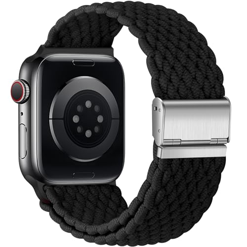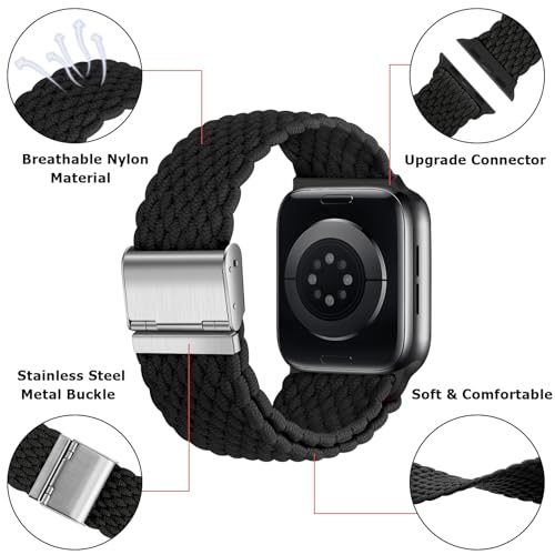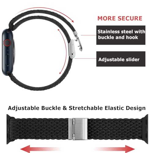 Anlinser Solo Loop Compatibile con Cinturino Apple Watch 49mm 45mm 44mm 42mm, Cinturini Elastiche con Fibbia Regolabile Compatibile con Apple Watch Ultra 2/Ultra SE Serie 9 8 7 6 5 4 3, Nero