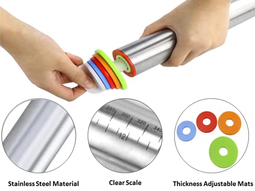 Anlising Mattarello in Acciaio Inox,Mattarello Regolabile,con 4 Dischi Regolabili e Segnapagina,Mattarello Antiaderente,Mattarello Regolabile in Acciaio Inossidabile,per Cottura Fondente,Biscotto