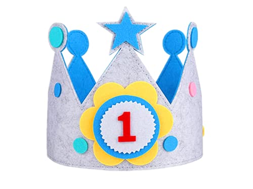 Dimensioni Regolabili: La corona di compleanno per bambini ha un bottone in nylon sul retro, puoi regolarlo in base alle dimensioni della testa del tuo bambino. La corona di compleanno in tessuto può essere perfettamente fissata sulla tua testa, sorprendere di più il tuo bambino e creare un momento indimenticabile.
