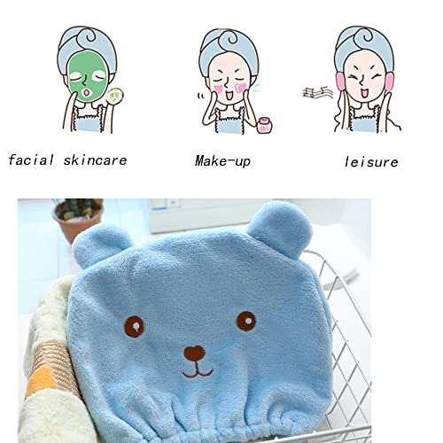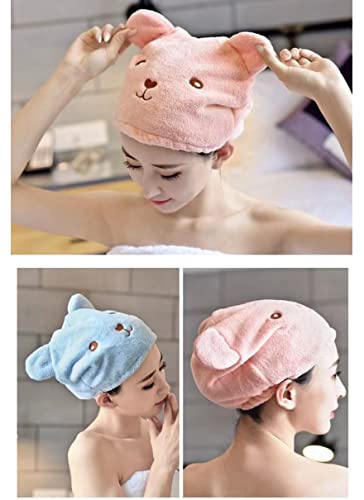 Anller Confezione da 2 cappucci per asciugacapelli, asciugacapelli, per bambine e ragazze, con orecchie avvolgenti, turbante per doccia e spa (blu e rosa)