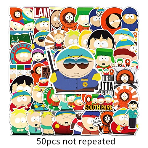 Anloximt 50Pcs Adesivo South Park Set Adesivi South Park Decorazione Impermeabile Pacchetto di Adesivi dei Cartoni Animati Incolla Fai da Te per Computer Laptop Skateboard Bottiglia d'Acqua Mug Decor