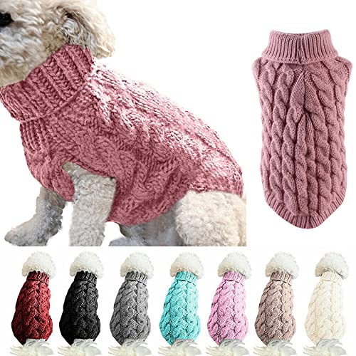 Anlrion Maglione per cani in maglia, con collo arrotolato, lavorato a maglia, morbido e caldo, a maglia, per cani di piccola taglia grande, in pelle rosa