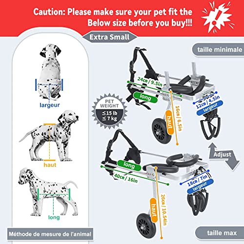 Anmas - Poltrona a rotelle per cani, regolabile, carrello per cani disabili per la riabilitazione delle gambe posteriori, due ruote, sedia a rotelle per cani (XS)