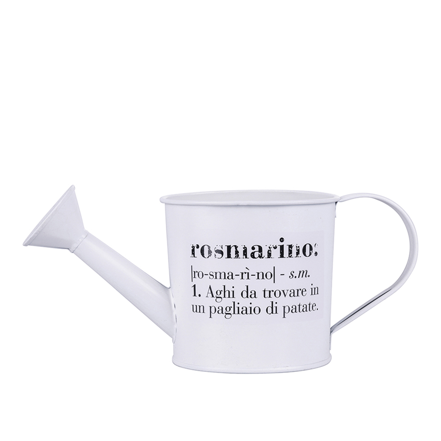 La linea Victionary, con il suo personale vocabolario, attribuisce ad accessori di uso comune un significato speciale che coniuga elementi di creatività e vita quotidiana. La definizione di rosmarino, stampata sul lato frontale di questo porta piantine dal design a forma di annaffiatoio, ti farà sorridere quando ti prendi cura della tua piantina aromatica. Realizzato in ferro galvanizzato color bianco, è dotato di manico per una facile impugnatura e un comodo spostamento. Misure: L 25 cm, P 11 cm, H 12,5 cm. Capacità: 550 ml.
