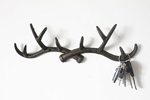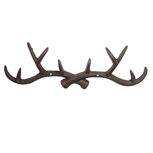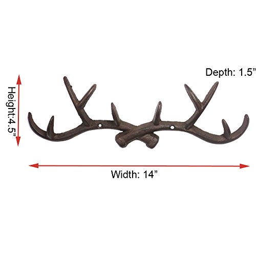 Annata 14" Rustico Ghisa Cervi Antlers Montaggio a parete Ganci del cappotto, Chicco squallido Appendiabiti, Portachiavi, Cappellino, Bagno Appendiabiti a parete, Ganci appendi cappotto (Rusty Brown)