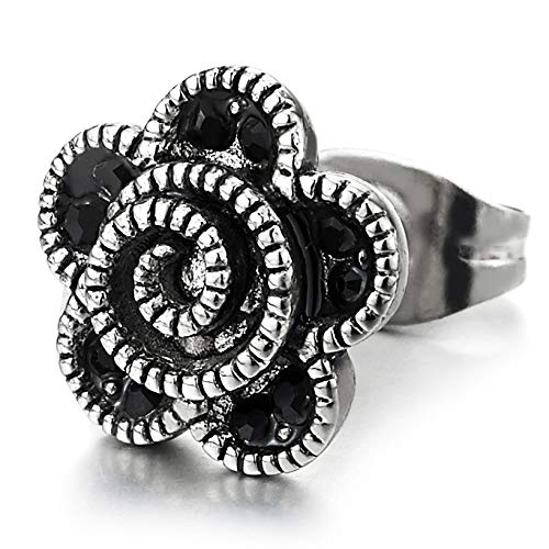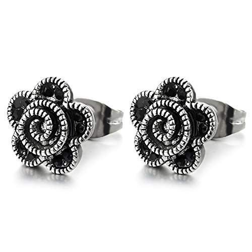 Annata Turbine Modello Corona del Cerchio Fiore Orecchini con Nero Zirconi, Orecchini a Lobo da Donna, Acciaio