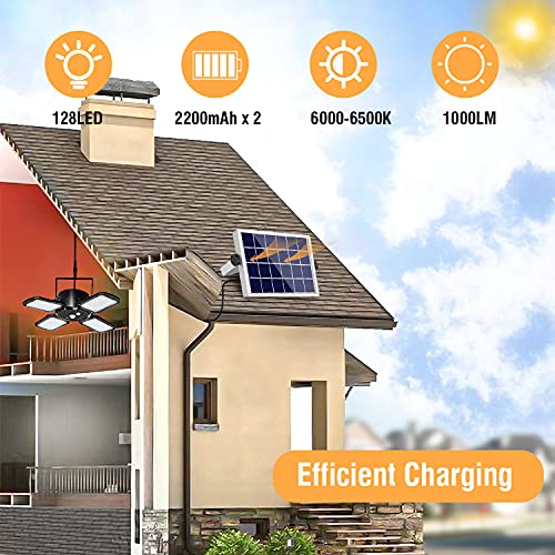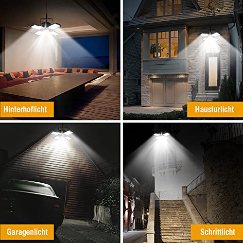 Luci solari ad angolo regolabile e luminose: lampada a sospensione solare a quattro fogli. Ogni foglio può essere regolato a 120°, in modo che la luce possa essere guidata esattamente dove è necessario. Questa luce solare di sicurezza dispone di 128 LED bianchi progettati per un'illuminazione ad altissima luminosità in un'ampia area.