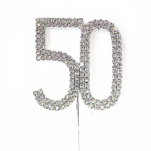 Anne - Topper per torte a forma di numero con brillantini, per compleanni e anniversari, disponibile nei numeri 25 - 50 - 60 number 50