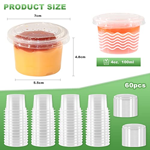 Annhao 60 Pezzi Contenitori plastica con coperchio 100 ML, 4oz Contenitori ermetici per alimenti, Tazze per Salsa, Condimenti, Snack, Slime(Trasparente)