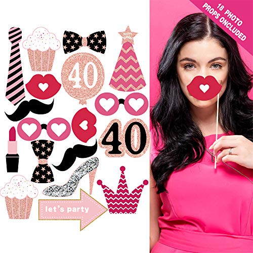 20 palloncini stampati + pellicole: 14 palloncini Happy 40th Birthday oro rosa, 6 palloncini a forma di coriandoli in oro rosa, 6 palloncini con coriandoli in oro rosa, 40 pollici con numero 40, per palloncini abbaglianti che stupiscono!